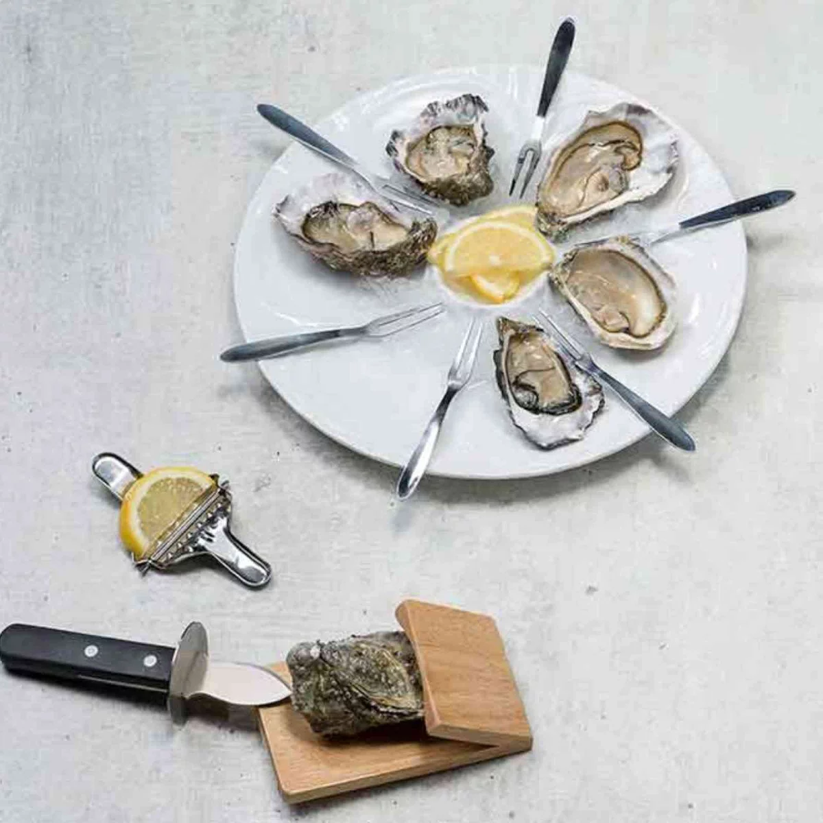 Porzellan-Austernteller mit Zitronenschale