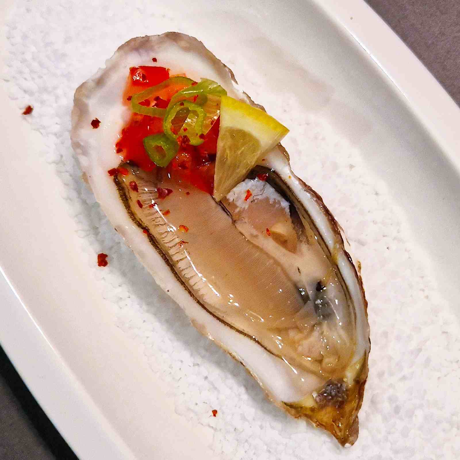 - Schon können die Austern mit den vorbereiteten Zutaten garniert werden: In jede Auster einige Tomatenwürfel, Frühlingszwiebelringe und Zitronendreiecke legen. Einen Spritzer frischen Zitronensaft darüber geben und mit Chiliflocken bestreuen. Und schon sind die Austern bereit serviert zu werden!